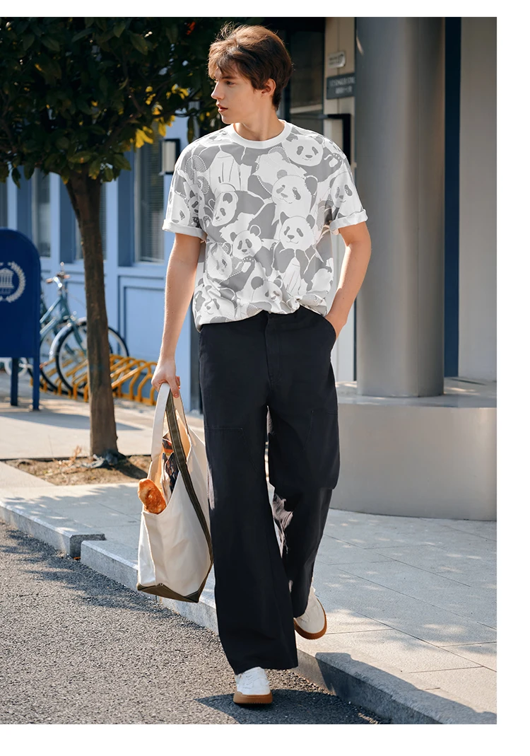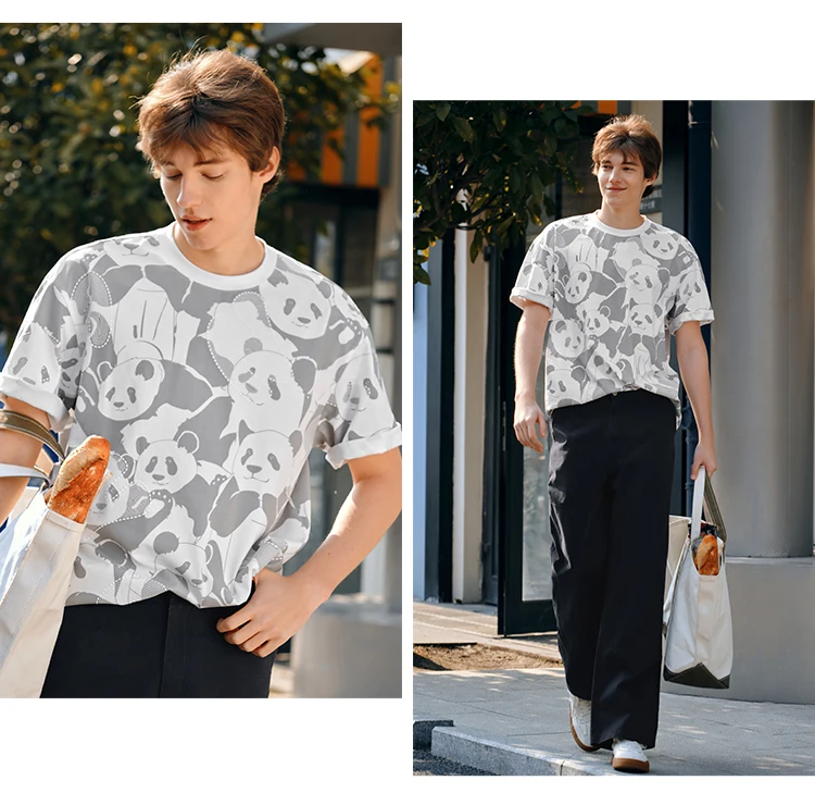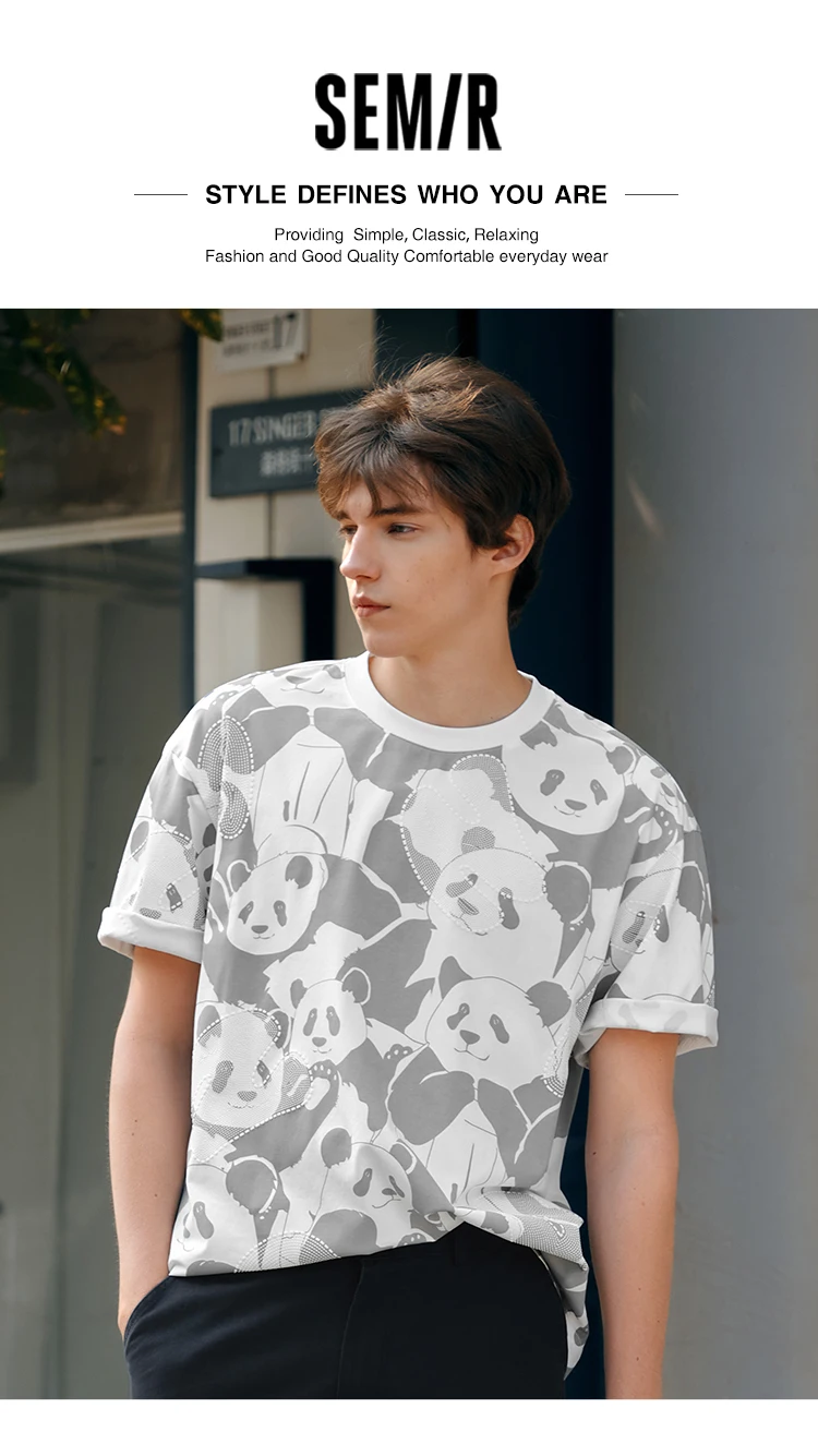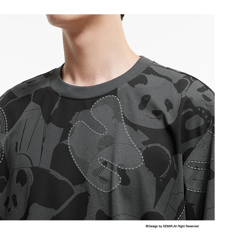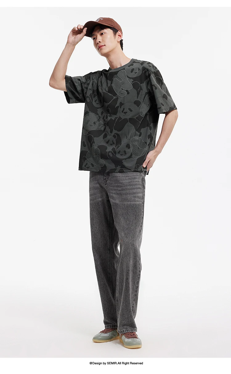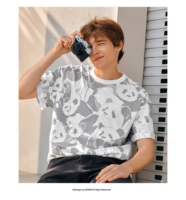 Semir Men Panda Print T-Shirt 2025 Summer Full Graphic Design Chinese Trend Loose Fit Tee for Streetwear Lovers