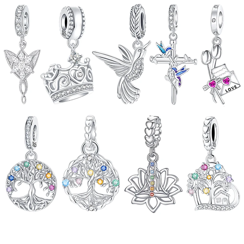 Original 925 Sterling Silver Leaf Tree of Life Charms Bead Bird Pendants Fit Bracelets DIY Jewelry Lover Friend Gift