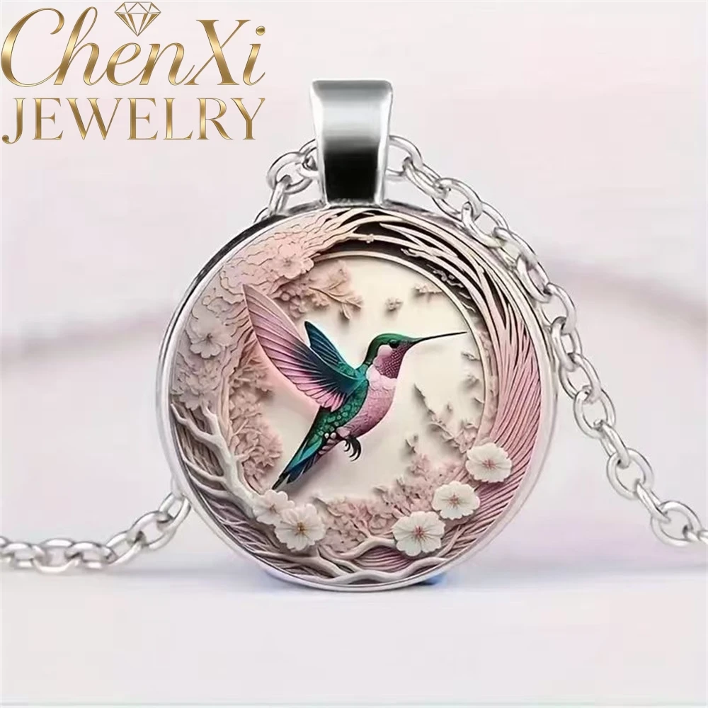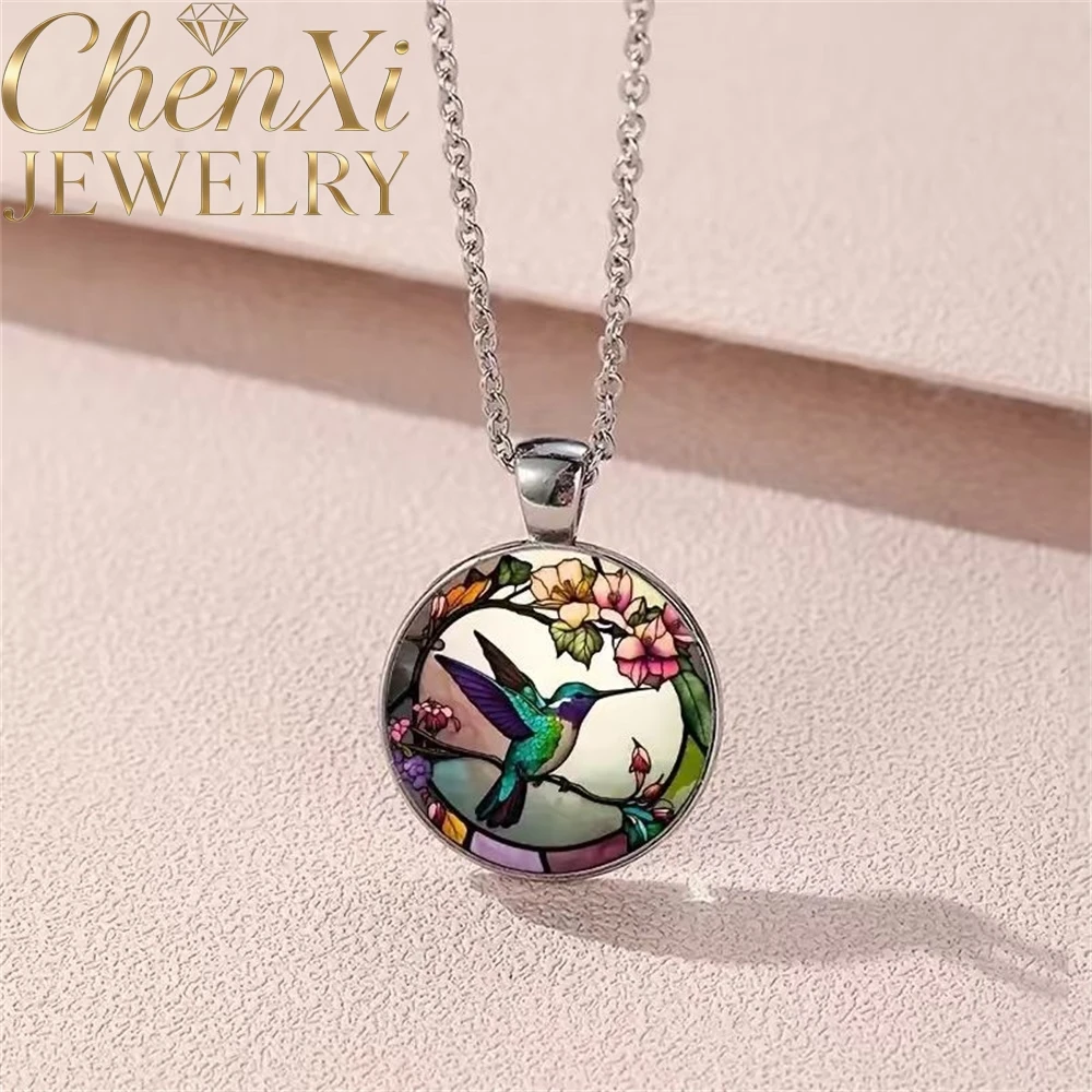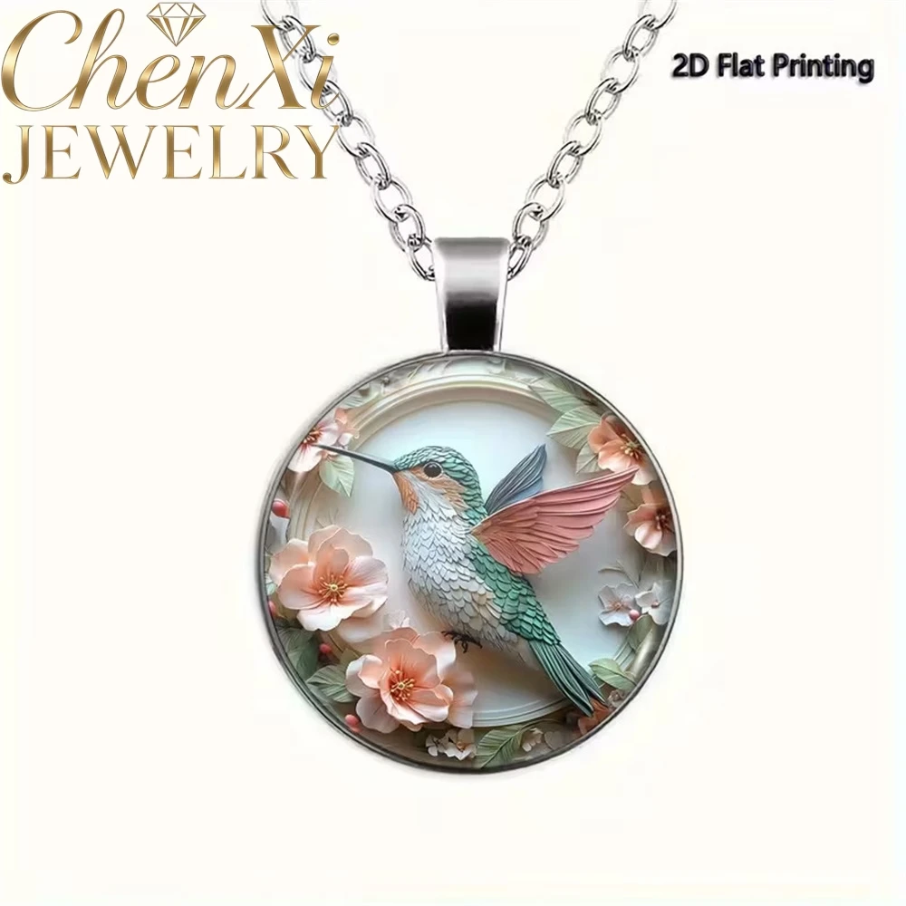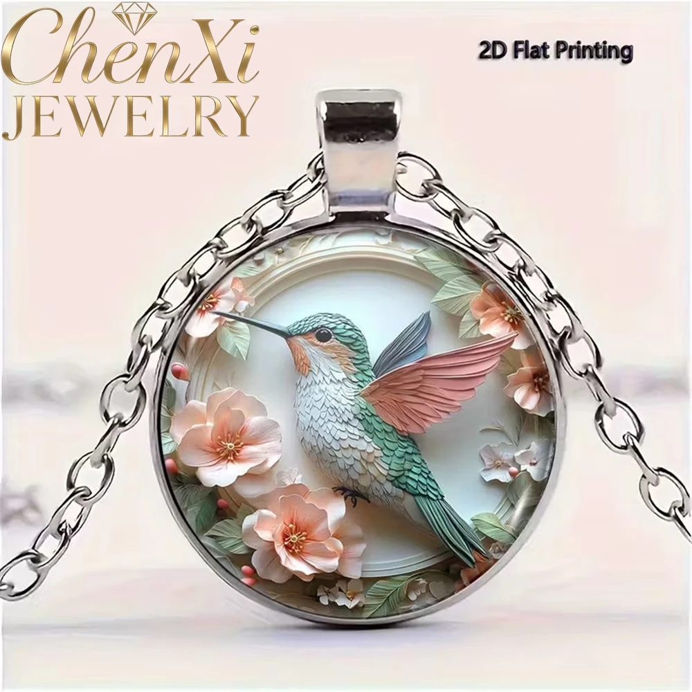 Retro-Inspired Hummingbird Flower And Floral Pattern Round Pendant Necklace Fashion Charms Exquisite Popular Best Selling Gift