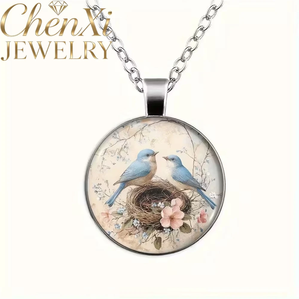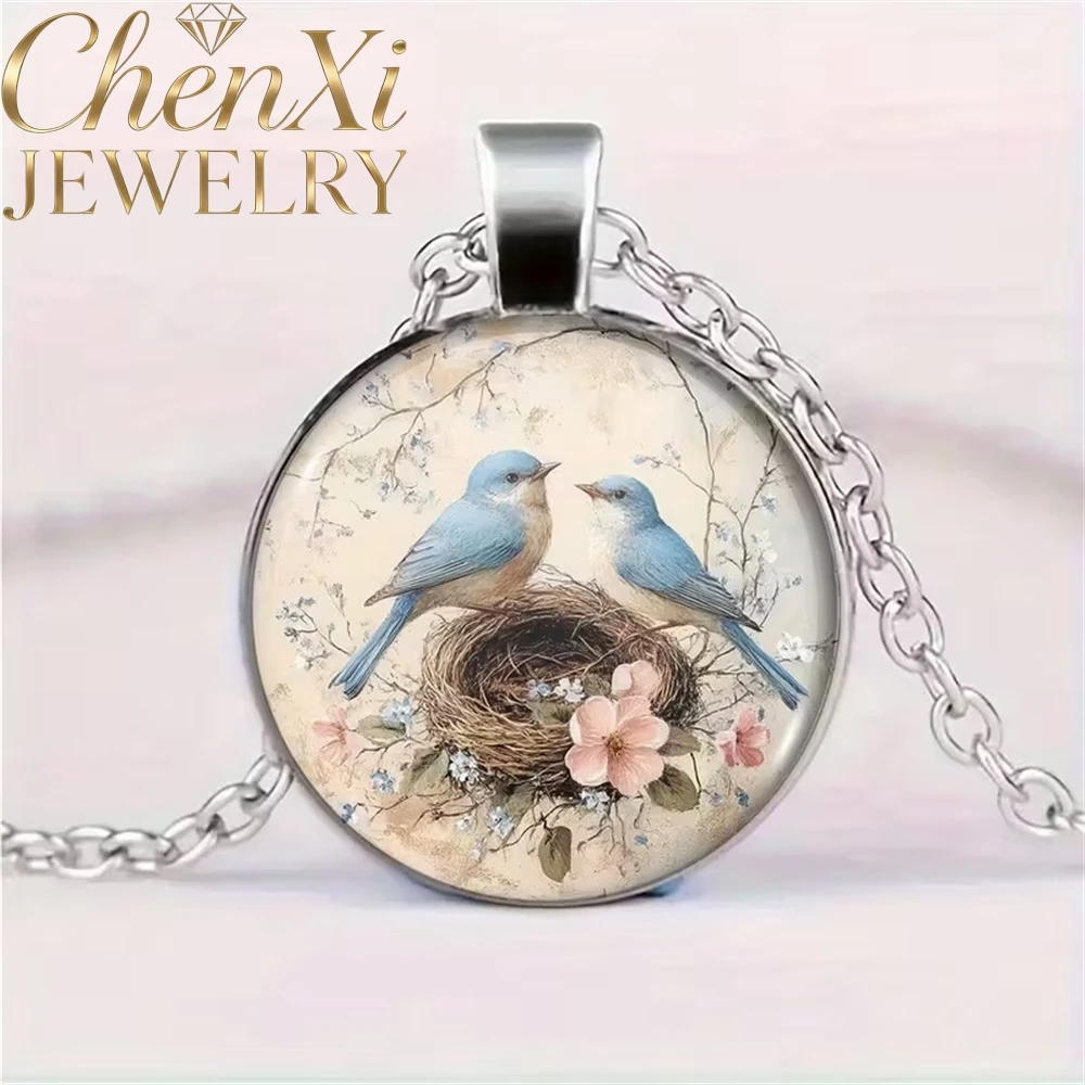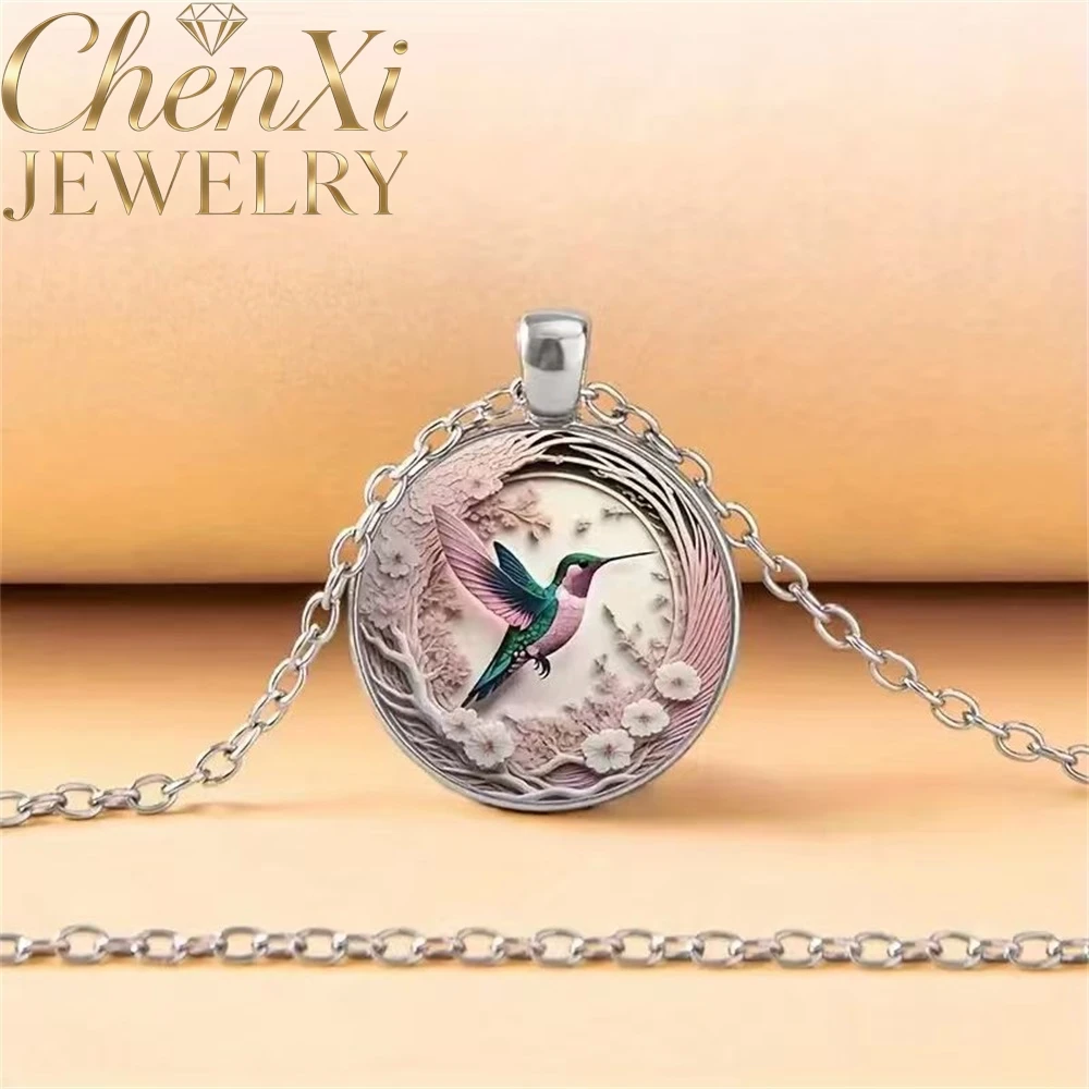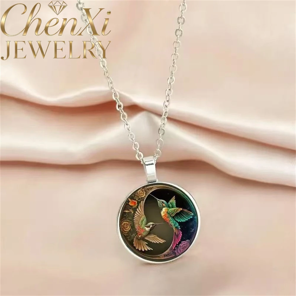 Retro-Inspired Hummingbird Flower And Floral Pattern Round Pendant Necklace Fashion Charms Exquisite Popular Best Selling Gift